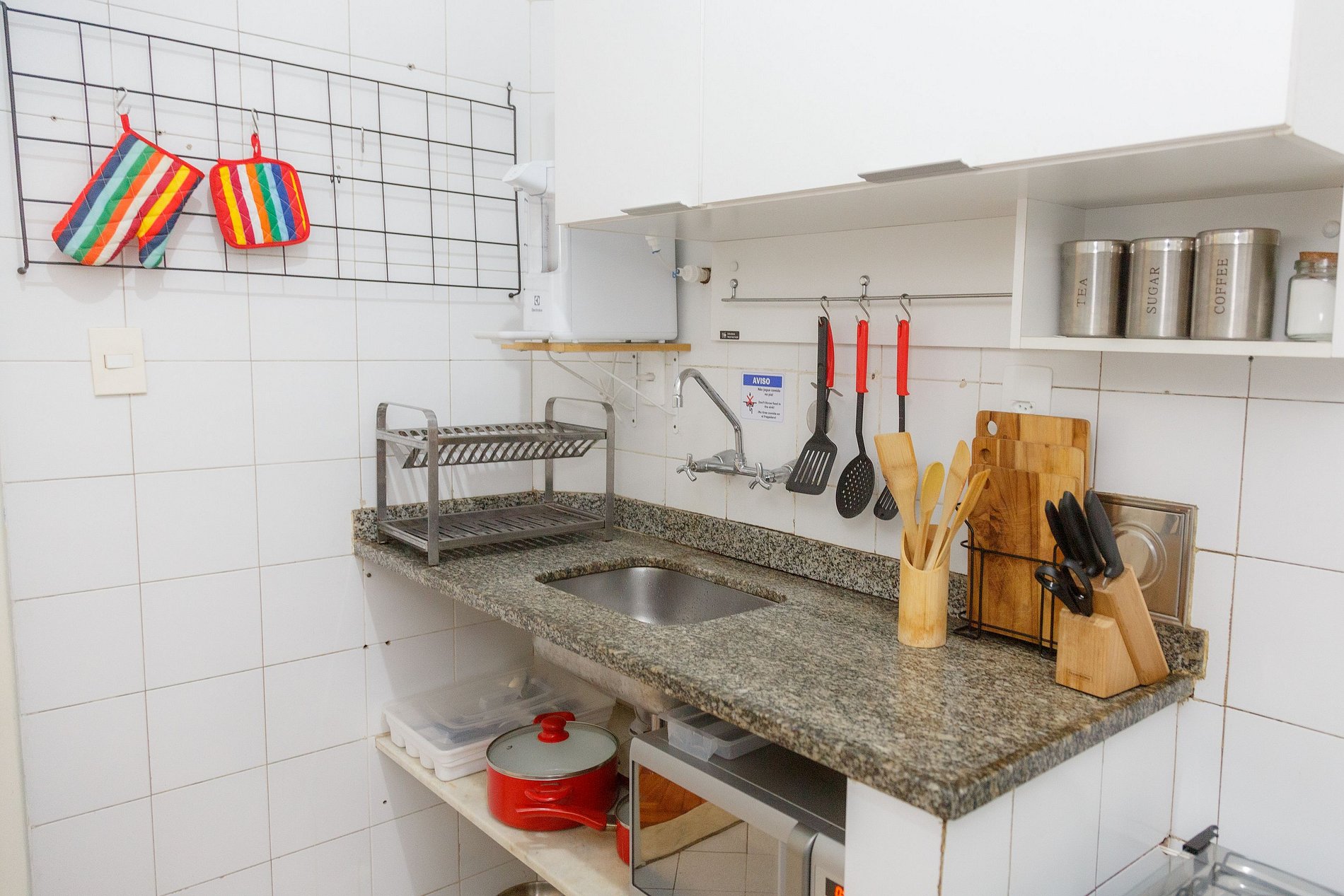 Apartamento muito bem equipado. TV com Netflix, Alexa, microondas, secador de cabelo, máquina de lavar, ferro de passar, filtro de água, cafeteira, cadeiras de praia, todos os utensílios de cozinha. Acho que só faltou um espelho de corpo inteiro. Camas confortáveis. Apartamento muito bem decorado. Localização excelente, fica na lateral do Copacabana Palace, uma rua bem tranquila. A anfitriã muito atenciosa e os funcionários do prédio muito queridos.