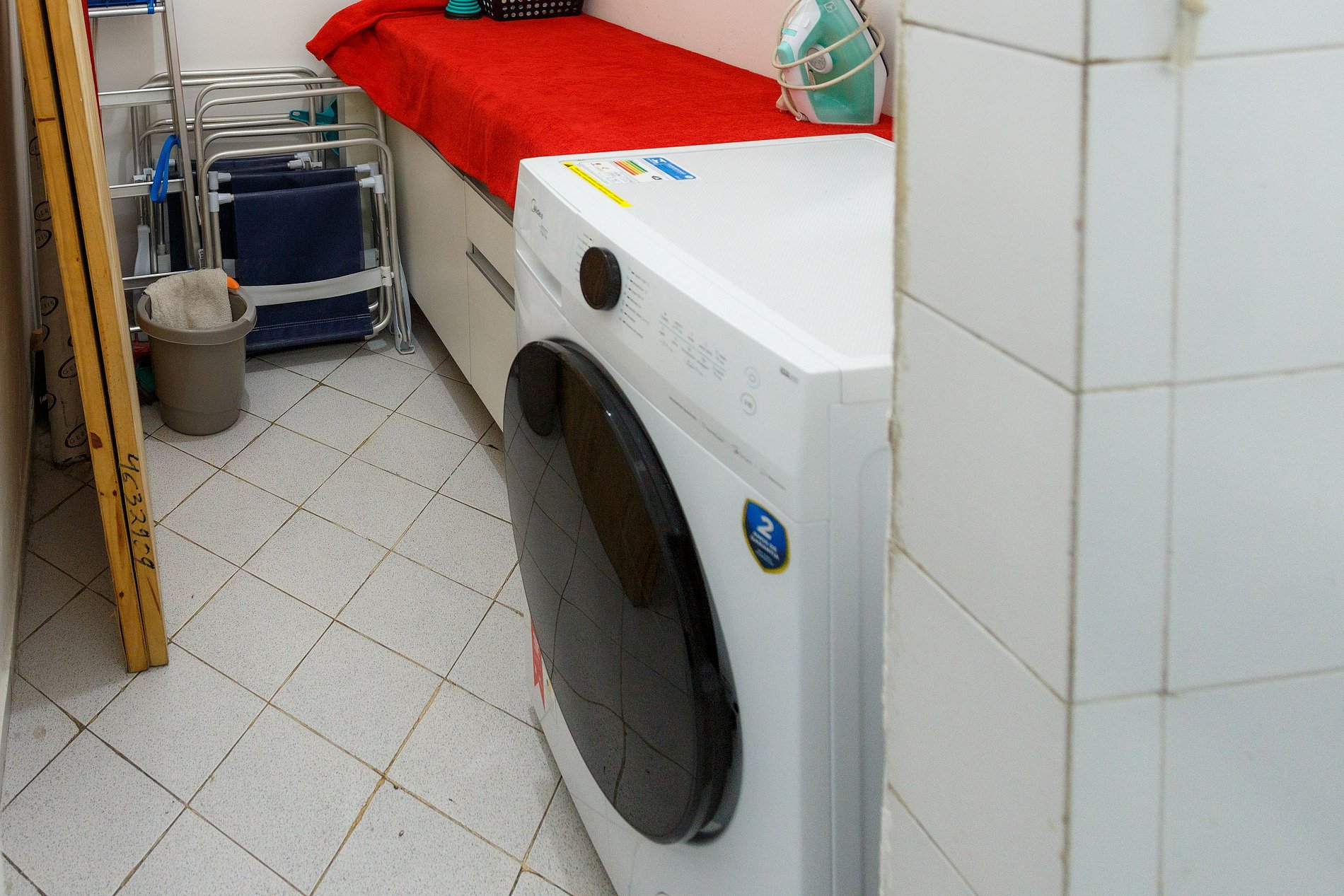Never been in an apartment so well equiped: there are chairs for the beach, a laundry machine that also dries, everything needed in the kitchen, AC in every room, TV and more!