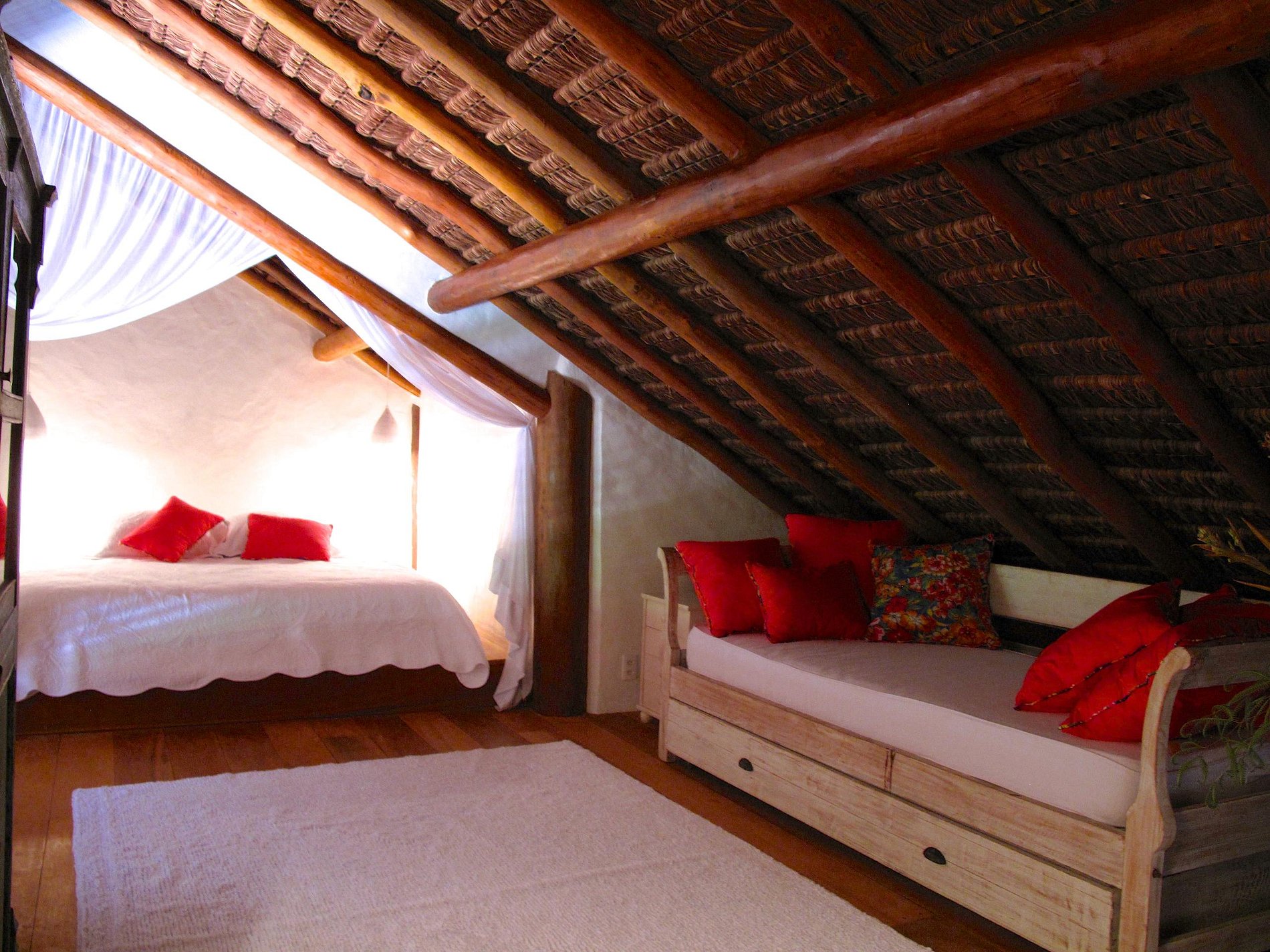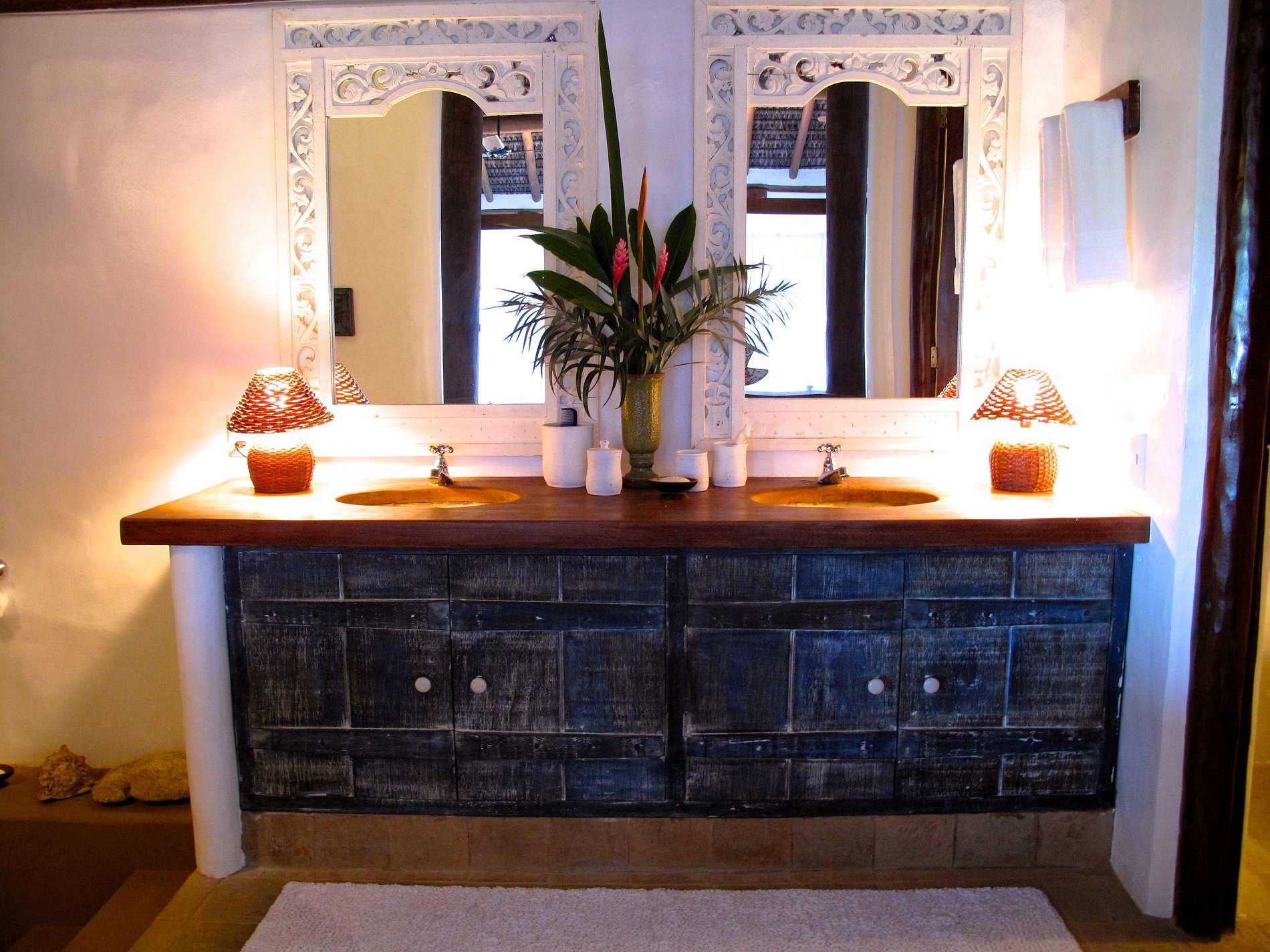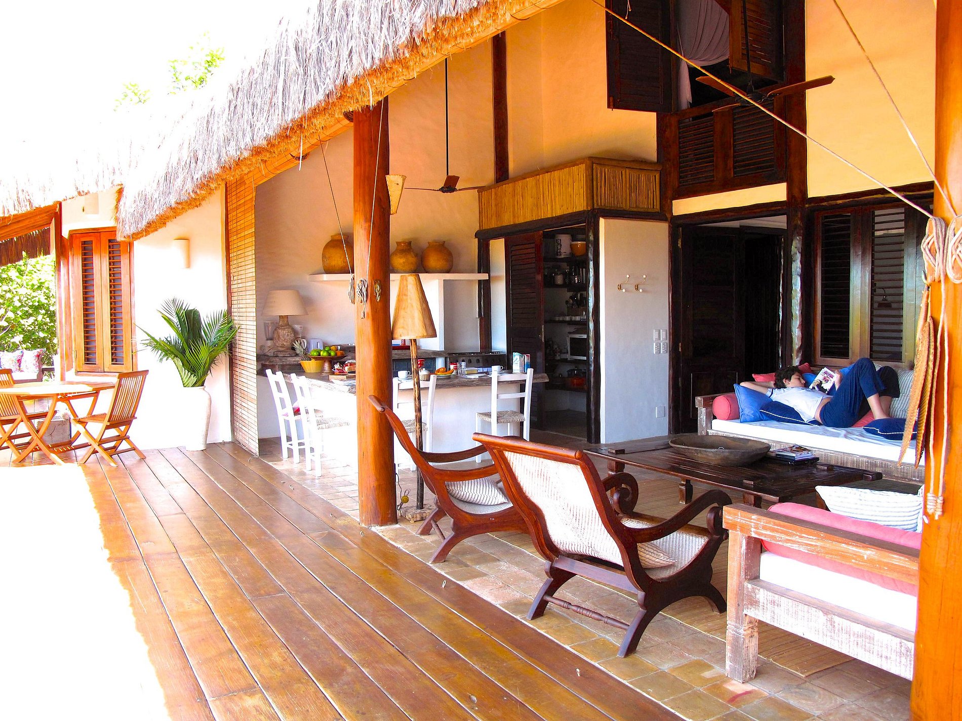 All the furniture was purchased in local Antique shops made by craftsmen in rustic style. The bungalow is a few steps from the beach.