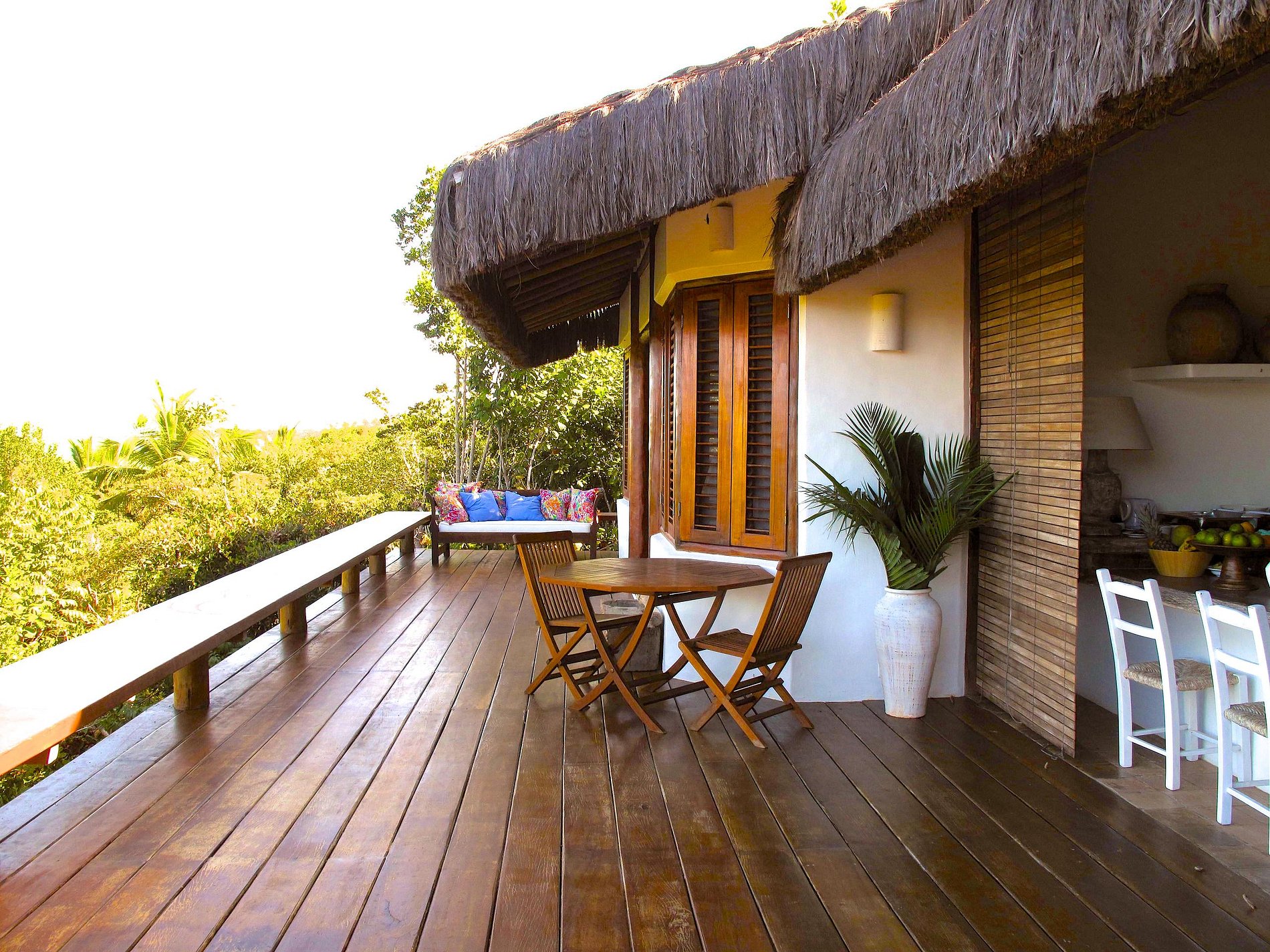 Um pedaço do paraíso... Este lugar é excepcional!! Uma das melhores experiência de praia que já tivemos. O Bangalô fica no Condomínio Outeiro das Brisas, a cerca de 100m de caminhada da praia, descendo uma escadaria por meio da floresta nativa. As dependências da casa são ótimas, com uma suíte master bem espaçosa e dois chuveiros. Há ainda um quarto com uma cama de casal, duas de solteiro e suite, e um terceiro quarto no mezanino, com cama de casal, mas sem suite. “Sala” e cozinha ficam na varanda, com uma vista belíssima da mata e o mar ao fundo. O bangalô assegura privacidade e sossego. Fica em frente à praia de Curuipe, dá para ir caminhando à praia do Espelho (mas a praia de Curuipe é ainda melhor que a do Espelho!). A taxa de limpeza refere-se à Erika, que também cozinha excepcionalmente bem: cuscuz marroquino com camarão, moqueca baiana, peixe “vermelho” assado com farofa de alho, bobô de camarão, arroz de polvo, ceviche de robalo, mousse de mangaba (colhidas pela Erika), cocada caseira. Aff... o era só uma estadia se transforma numa experiência gastronômica!! Com uma boa companhia é garantia de felicidade... Viva a Bahia!!