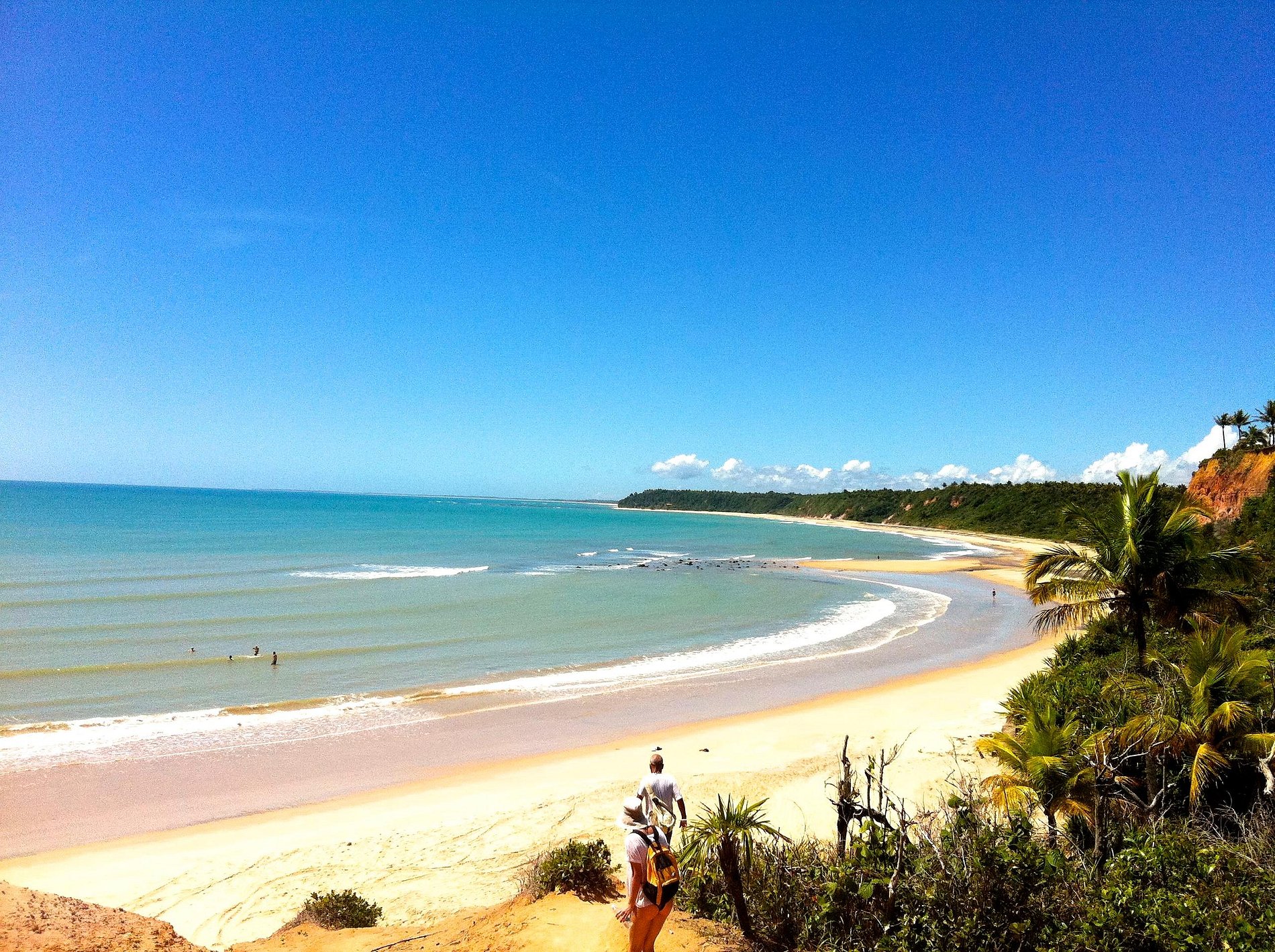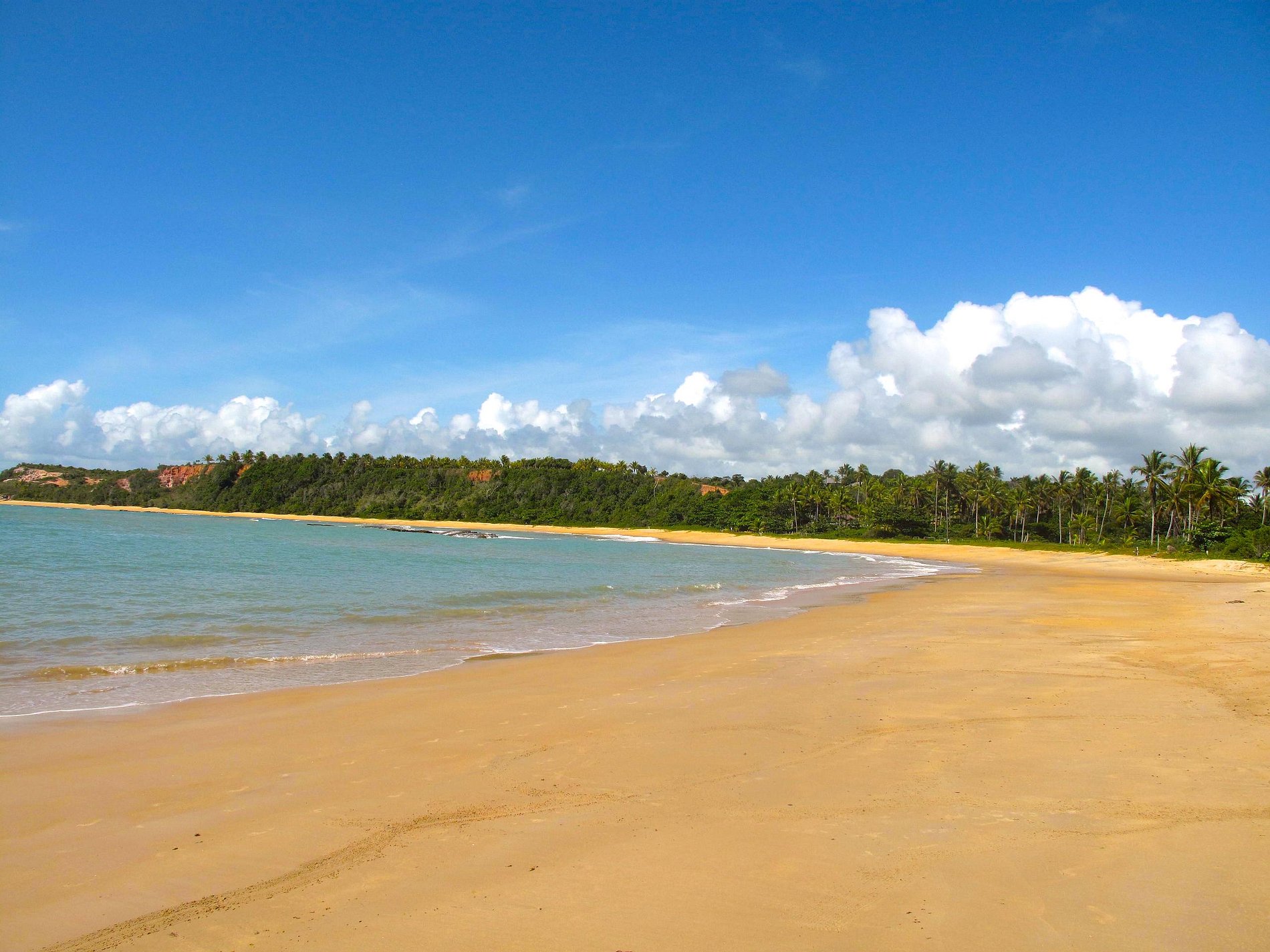 The natural pools that form at Praia do Espelho (also called Curuípe), are the desire of many tourists who visit the South Coast of Bahia. Combined with the beautiful cliffs in shades of pink, red, beige and ocher, Praia do Espelho becomes a paradise for lovers of the sea. The view is complete with the intense coconut trees that border the sand strip and also with the river that flows into the sea, giving a bucolic and even more charming air to the Mirror.