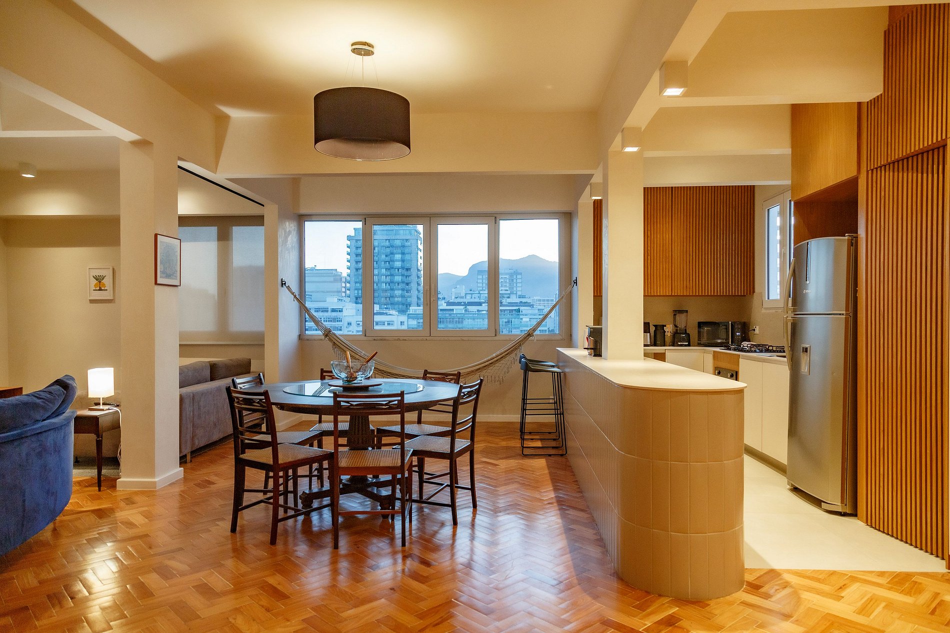 El departamento es precioso y muy cómodo. Todas las habitaciones cuentan con baño privado, y los baños están muy bien equipados. Solo una de las suites tenía una cama poco confortable, pero las demás eran excelentes. El living es amplísimo, con variedad de sillones ideales para descansar o compartir en grupo, y una vista hermosa a la plaza. La cocina está super bien equipada, con gran variedad de vajilla y electrodomésticos. Si incorporara lavavajillas, sería perfecta. La ubicación es muy buena : cerca de la playa, del subte, de tiendas y a pocas cuadras del centro de Ipanema. Volvería y recomendaría sin dudas.