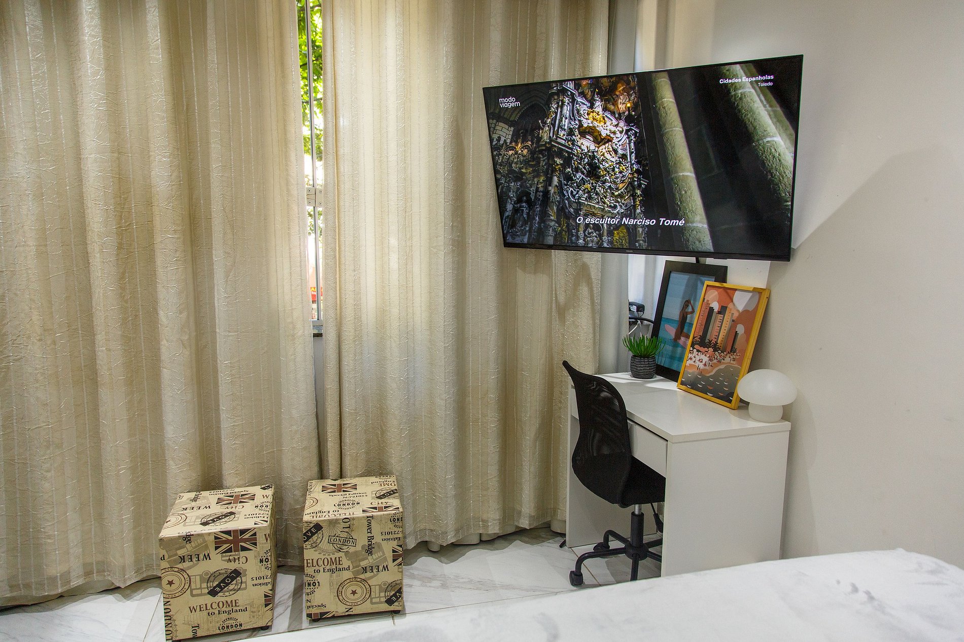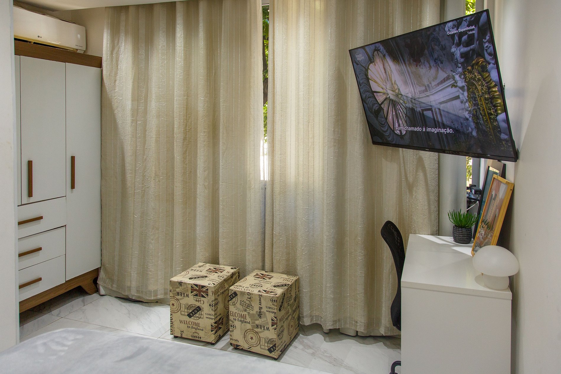 * Smart TV 40" com acesso à Netflix, Globoplay e HBOMAX para seus momentos de lazer.