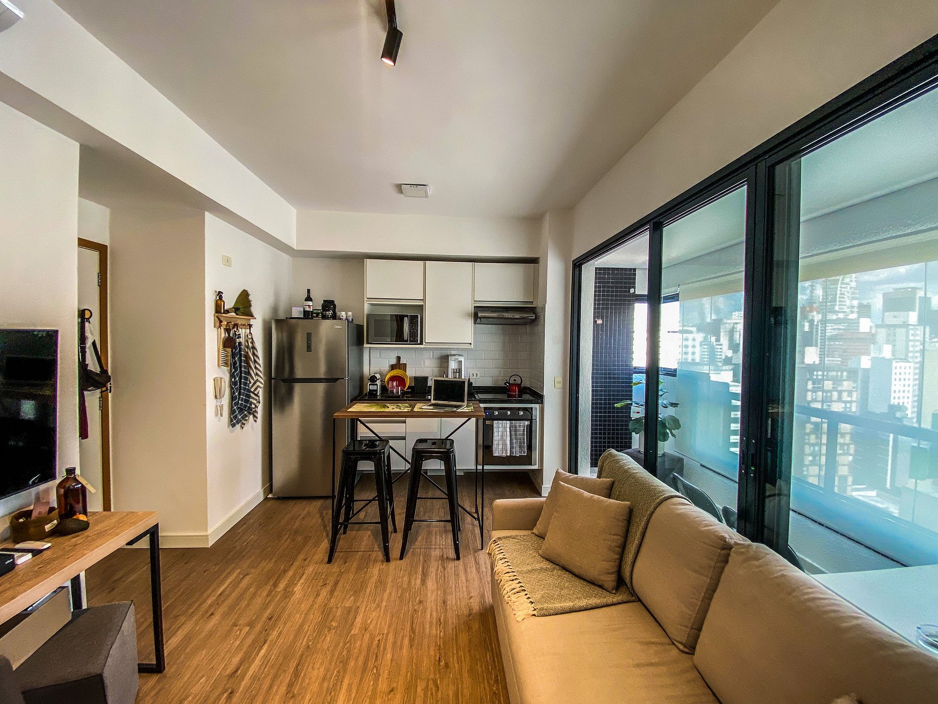 Apartamento compacto e bem montado. Fica bem para duas pessoas. Apesar do sofá cama achei que para 3 pessoas fica difícil de organizar. Localização muito boa e funcionários prestativos.