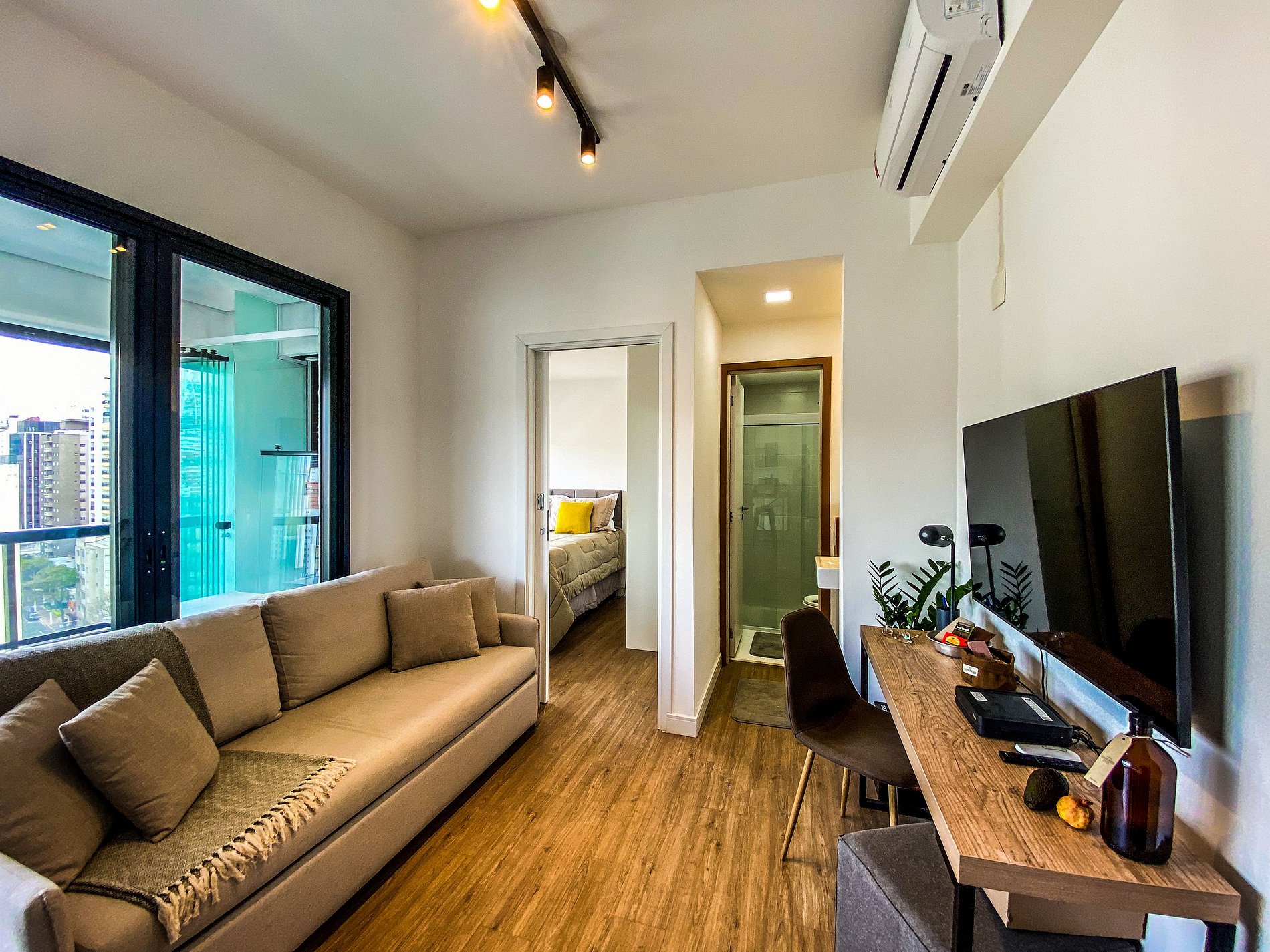 O apartamento tem tranca digital, Tv boa, ar condicionado. Bem localizado, com acesso rápido de uber a locais como augusta e paulista. Apartamento pequeno mas comporta duas pessoas bem, três fica no limite. Bem equipado e limpo, desde ferro de passar a utensílios de cozinha.